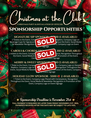 This holiday season, we invite you to come together in celebration of tradition, leadership, and community. Join us as we “Deck the Halls” with festive cheer and proudly “Pass the Gavel” to our incoming 2026 officers.
